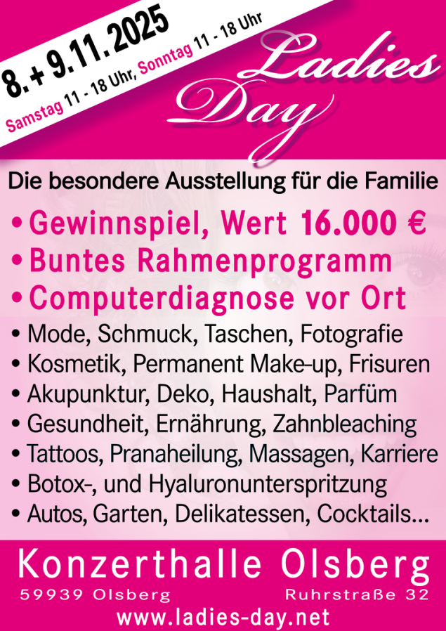 Nutzen Sie die Möglichkeiten, auf dem Ladies Day Informationen auszutauschen, zu shoppen, sich verwöhnen und stylen zu lassen, sich zu präsentieren und Ihre Produkte anzubieten.